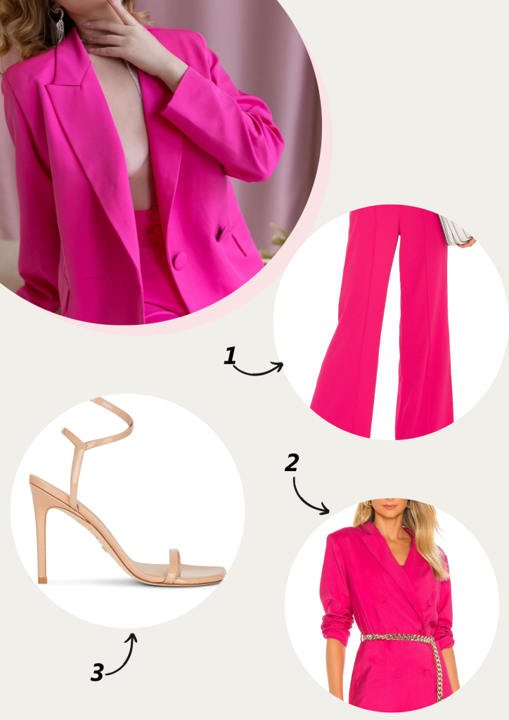To complement the boldness of the pants, I paired them with the Lovers + Friends Michelli Blazer in Wild Pink as well. This oversized blazer adds a layer of chicness to the outfit. Its relaxed fit and vibrant color create a harmonious balance with the wide-leg pants, resulting in a trendy and timeless look.
